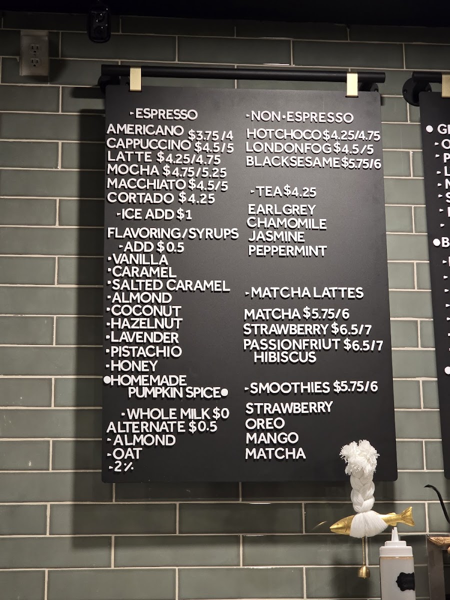 The menu supports casual dining or quick ordering, making it suitable for customers seeking coffee and tea beverages alongside baked goods and cakes. This combination allows for flexible use whether visiting for a short break or a light meal.